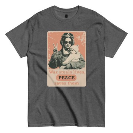 $23.95The cost of war is measured in lives. Not in dollars. Not in territory. In people. In futures. In mothers, fathers, children, and dreams left behind. Our “War Steals Lives | Peace” Unisex Classic Tee states the truth plainly. No symbols. No metaphors. Just the facts: war takes, and peace gives. Wear […]