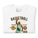 The t-shirt’s retro illustration highlights the essence of basketball with bold imagery and an eye-catching design. Whether worn during a friendly game of pick-up basketball, a trip to the court, or as a tribute to the sport’s legacy, this shirt makes a statement. The design is printed using high-quality inks that ensure a long-lasting and vibrant graphic, even after multiple washes. The versatile, unisex fit ensures that it’s suitable for everyone, allowing basketball fans to wear their love for the game proudly. With a wide range of colors to choose from, this t-shirt pairs easily with jeans, shorts, or casual pants, making it an ideal addition to any casual wardrobe.