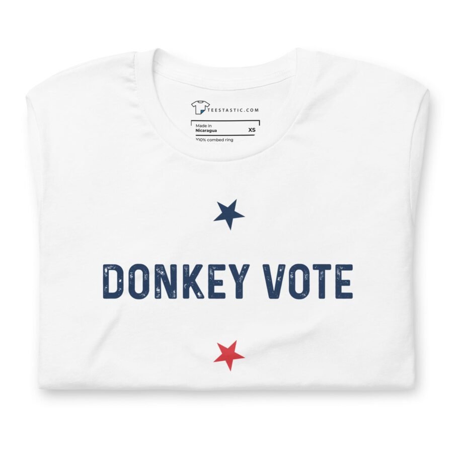 This unisex tee doesn’t discriminate – it’s a political revolution draped in cotton. It’s a reminder that in the world of fashion, everyone can be a donkey rider, regardless of their political leanings. Slide into this tee, and you’ll feel as comfortable as a donkey in a stable (minus the hay). Don this tee, stand tall like a donkey, and let your style bray the loudest!
