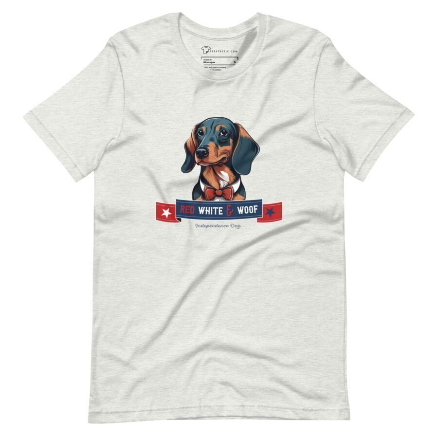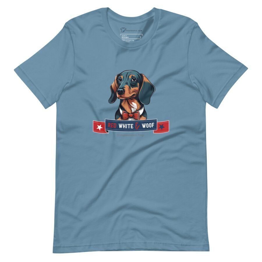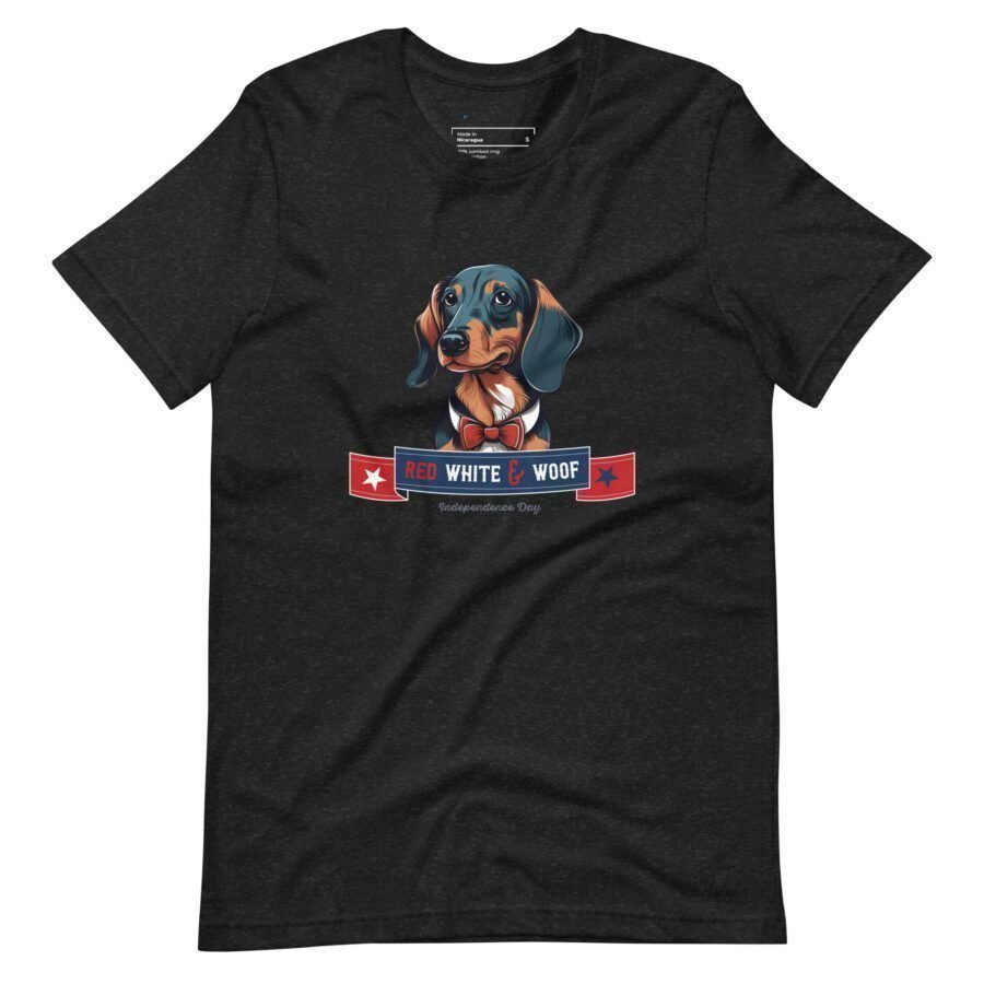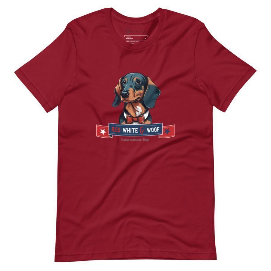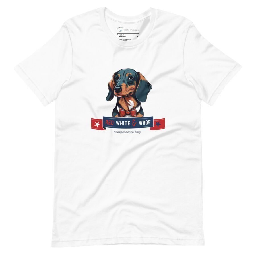 Make a statement and honor the bond between humans and their Dachshund companions with the 4th July Red White & Woof t-shirt. Perfect for individuals who cherish their dogs, love their country, and want to celebrate Independence Day in style.