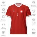 With the upcoming Euro 2025 Championship on the horizon, now is the time to gear up with the Switzerland Soccer Jersey. Featuring UPF50+ protection and a double-layered v-neck collar, it offers style, durability, and peace of mind against harmful UV rays. Elevate your game and represent your team with pride in this sustainable yet high-performance soccer jersey.